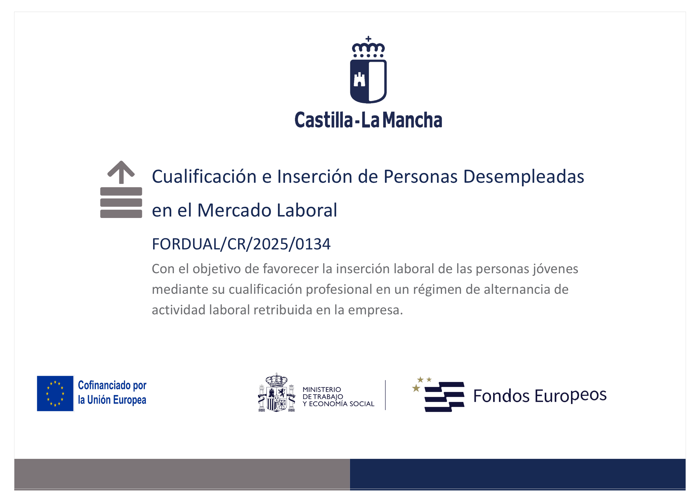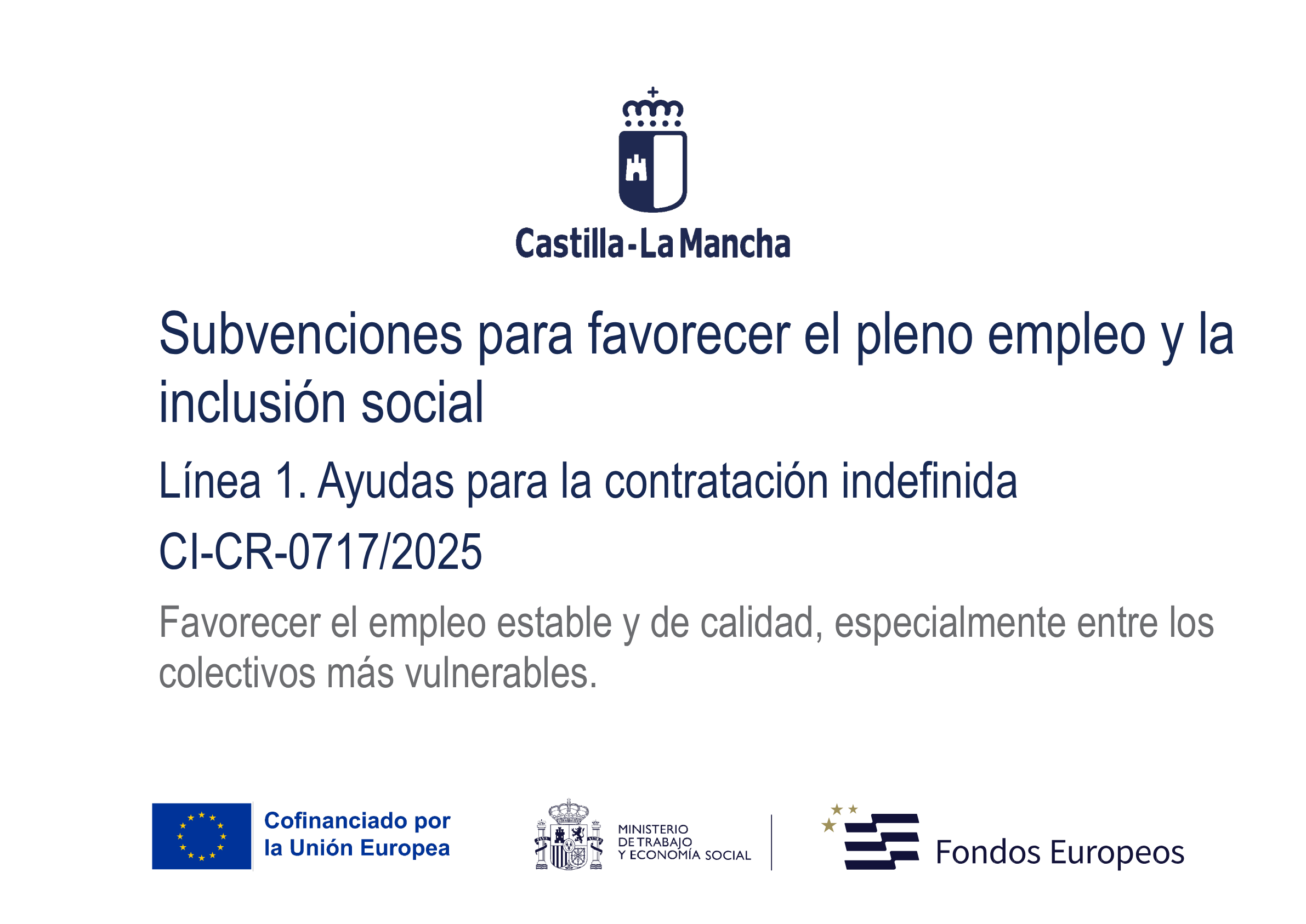 Estas actuaciones están cofinanciadas por el Fondo Social Europeo Plus (FSE+) y forman parte de la iniciativa para promover la inserción laboral en nuestra región, facilitando tanto la contratación y formación de jóvenes como el fomento del empleo estable, con el objetivo de mejorar la empleabilidad y contribuir a un mercado laboral más inclusivo y competitivo.